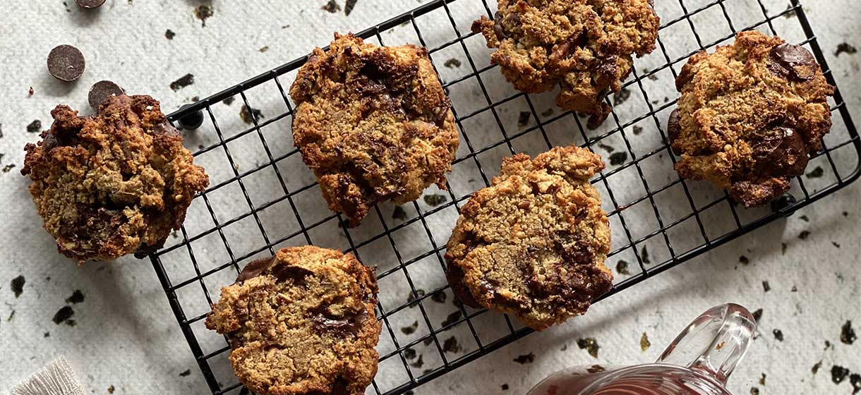 - Hak de pecannoten met een hakmolentje tot grof meel. Stort deze in een mengkom en doe er de erythritol erbij.